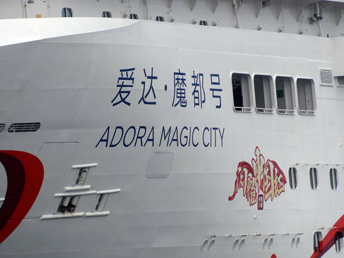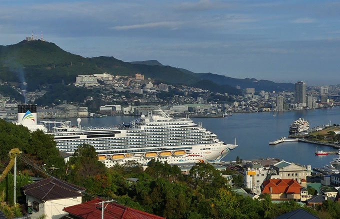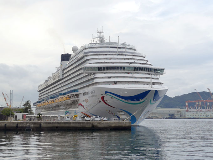 出島岸壁には「コーラル・ジオグラファー」が接岸しています