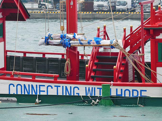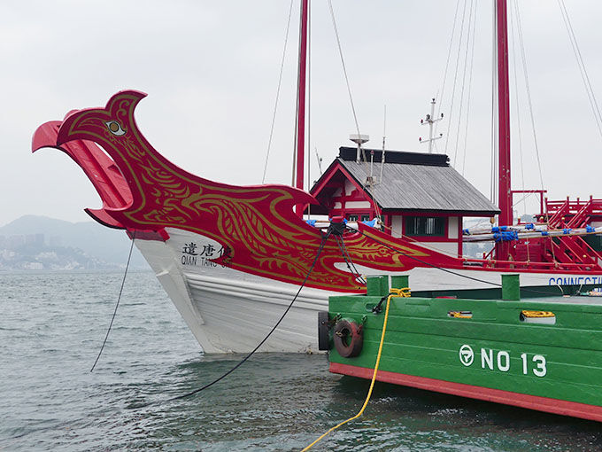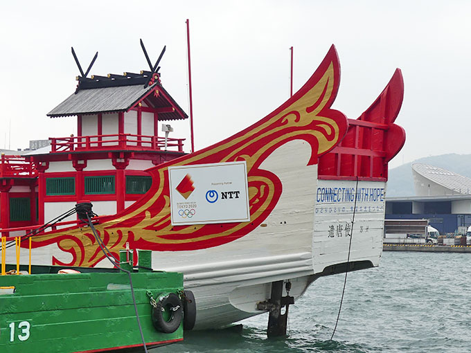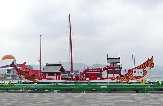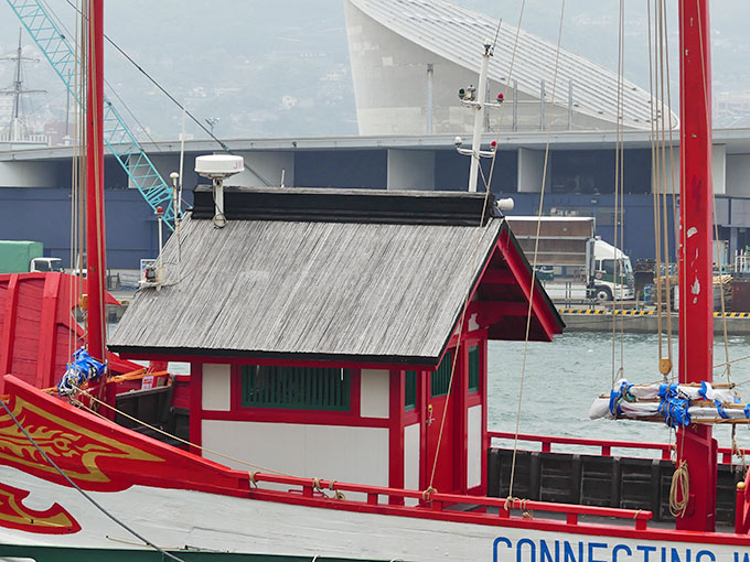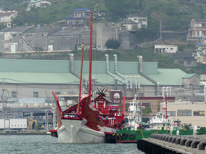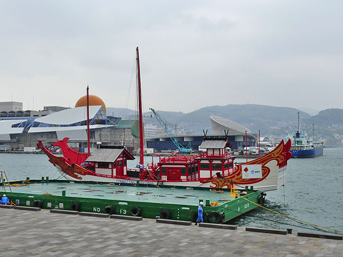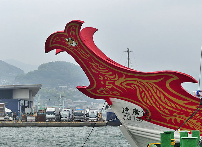 県庁横の岸壁に 遣唐使船