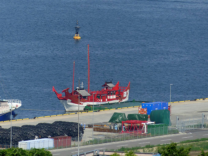 遣唐使船は5月8日出島岸壁から 柳埠頭に曳航されて来ました