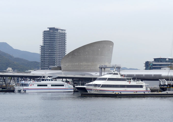 出島ワーフから見た新旧「俊寛」