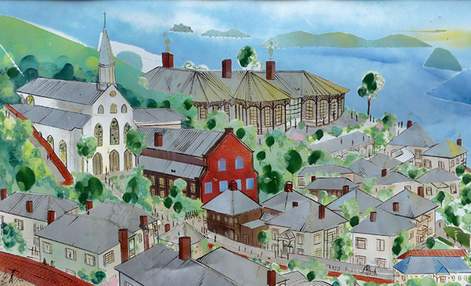 不思議な絵があります 長崎オルゴール館の前です