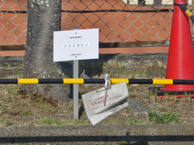 桜の標本木のまわりに 赤い三角コーンが置かれました