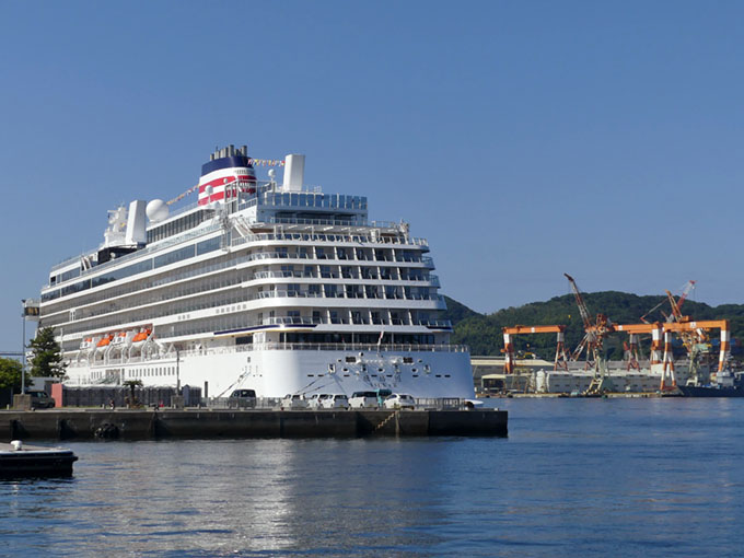 右に見える 三菱の立神ドックで 飛鳥、飛鳥Ⅱは建造されました