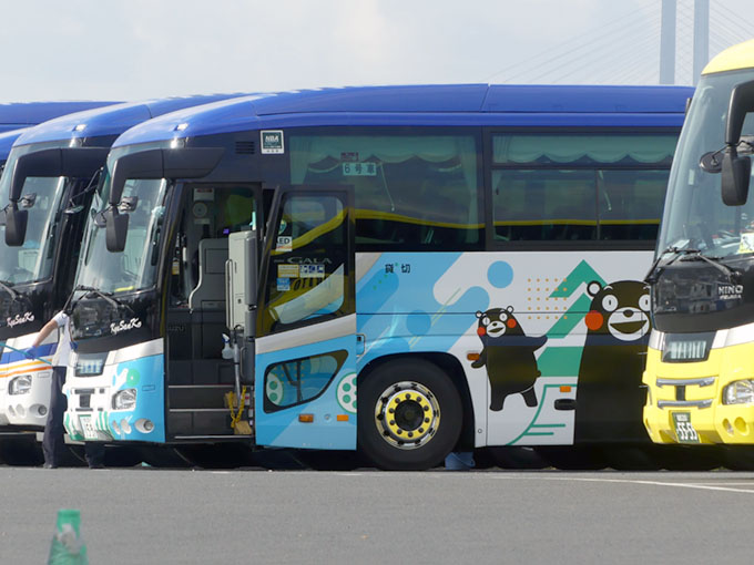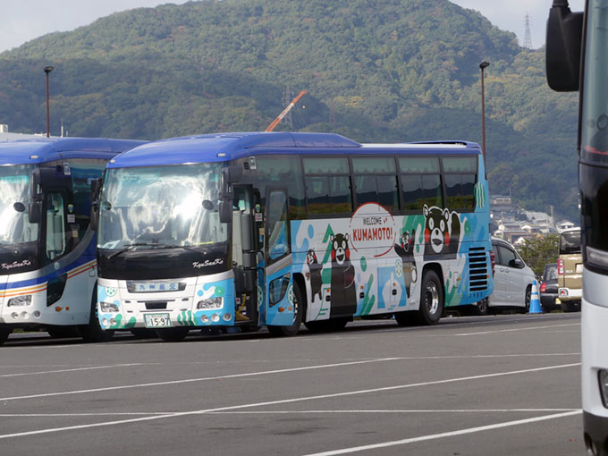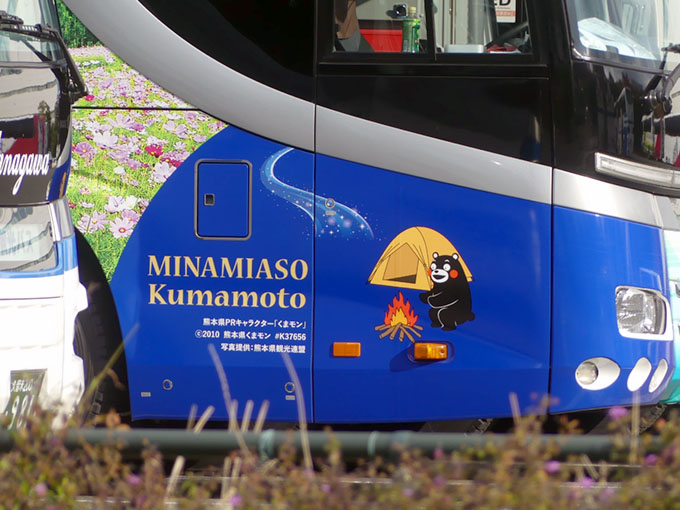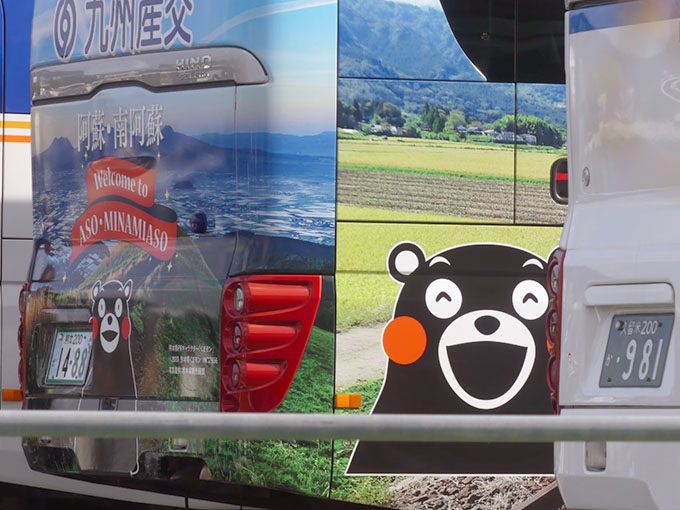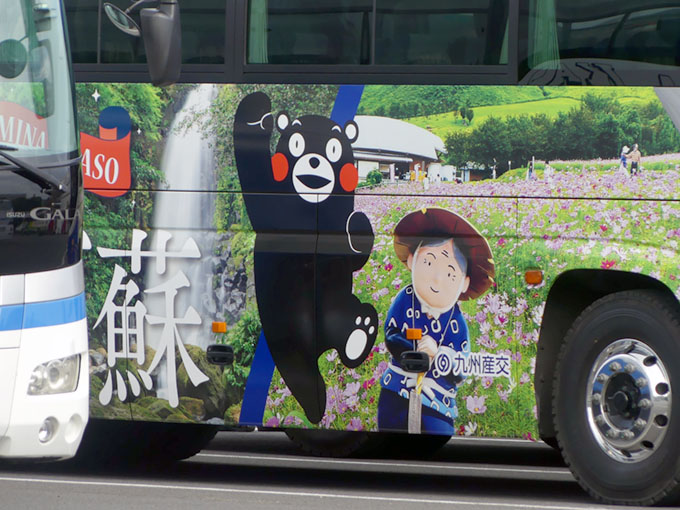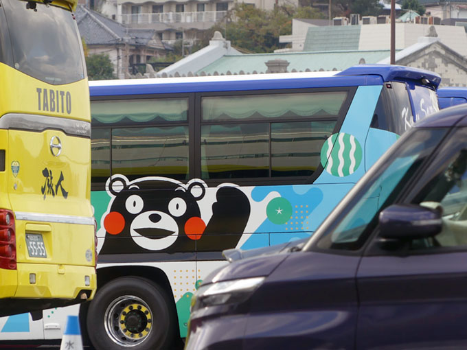 特に「くまモン」のラッピングバスは目立ちます