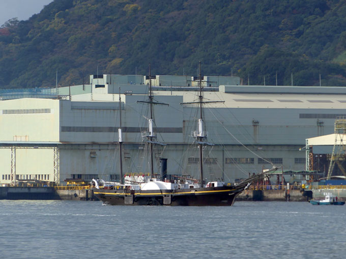 造船所の前を通過