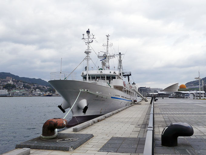 ちょうど 「熊本丸」が 出島岸壁に接岸するところでした