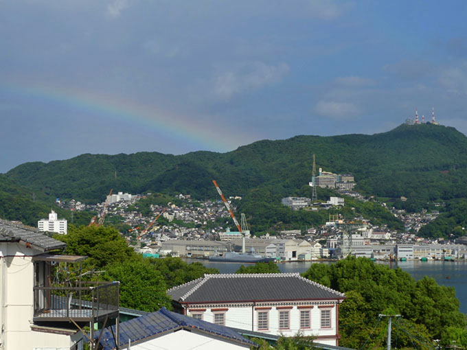 正面下の瓦屋根は 東山手洋風住宅群の一部です