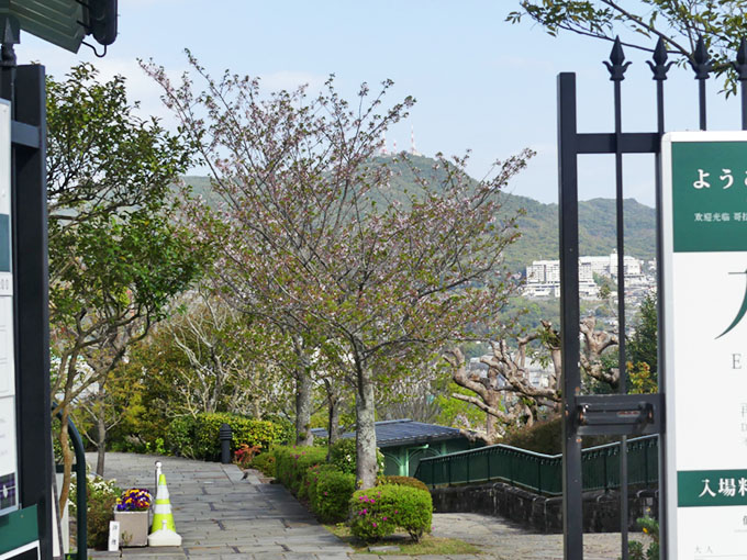 グラバー園の第2ゲートの桜 ほとんど緑になりました